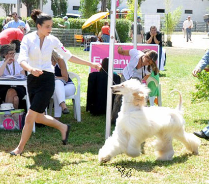 Coco is a daughter, through artificial insemination, of world known Svinto -Kingsleah Blue Star, owned and breed by Gunilla Holgrem (Sweden). Svinto is one of those afghans that every afghan hound breeder identifies just hearing his call name. He gathered lots of great winnings during his life and is the sire of numerous champions arround the world.